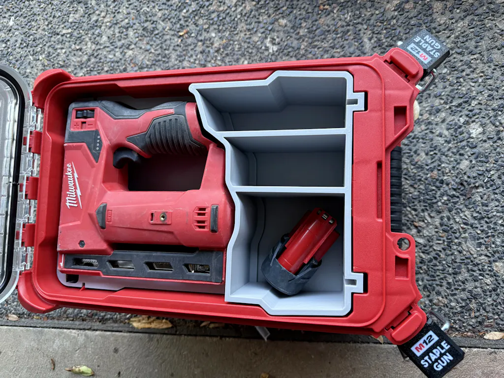 Custom insert designed to fit your Milwaukee PACKOUT to store your M12 Staple Gun and all your extra staples!