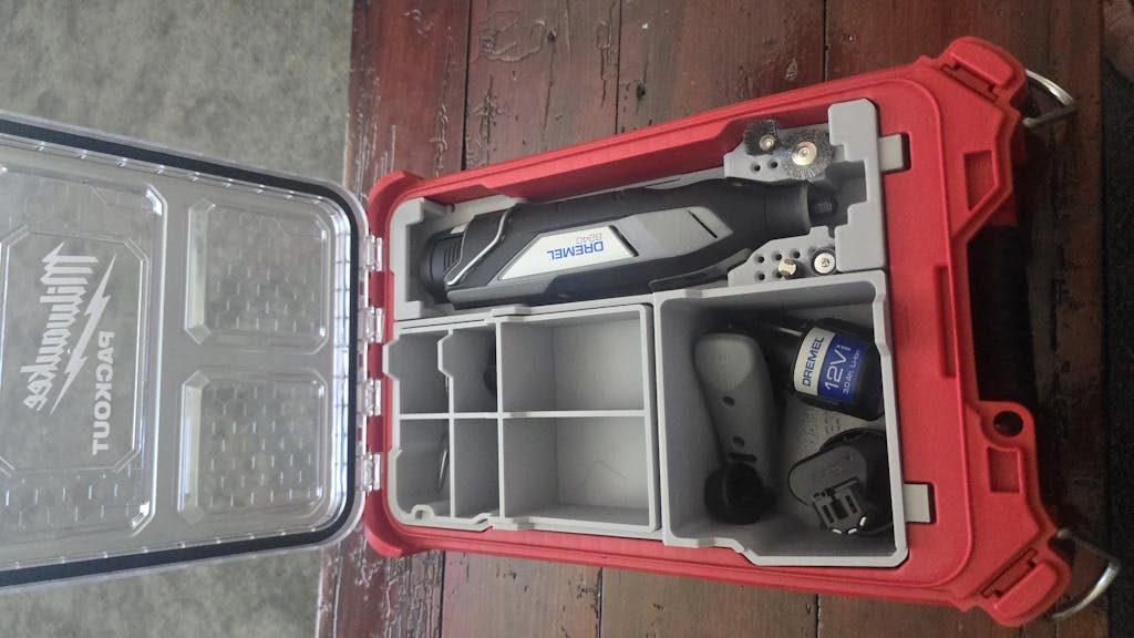 Custom insert designed to fit your Milwaukee PACKOUT to store your Dremel 8240 and all your accompanying and kit/Dremel Bits.