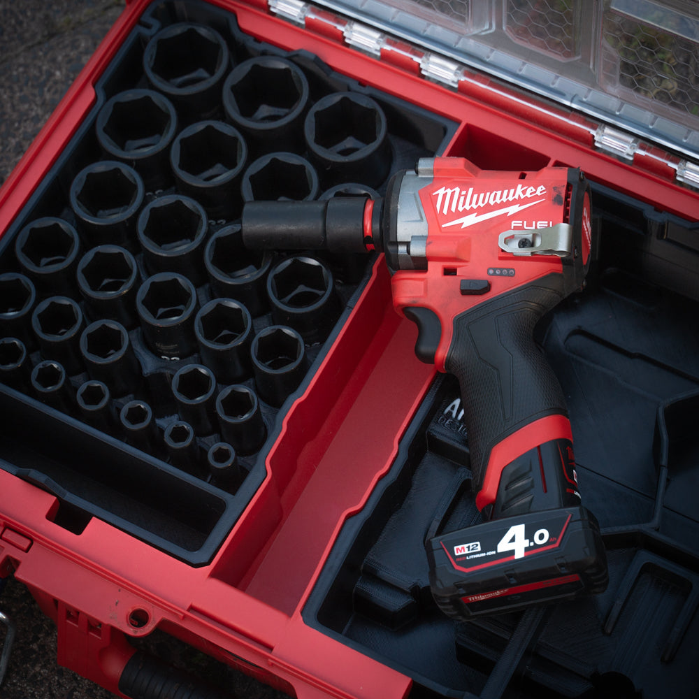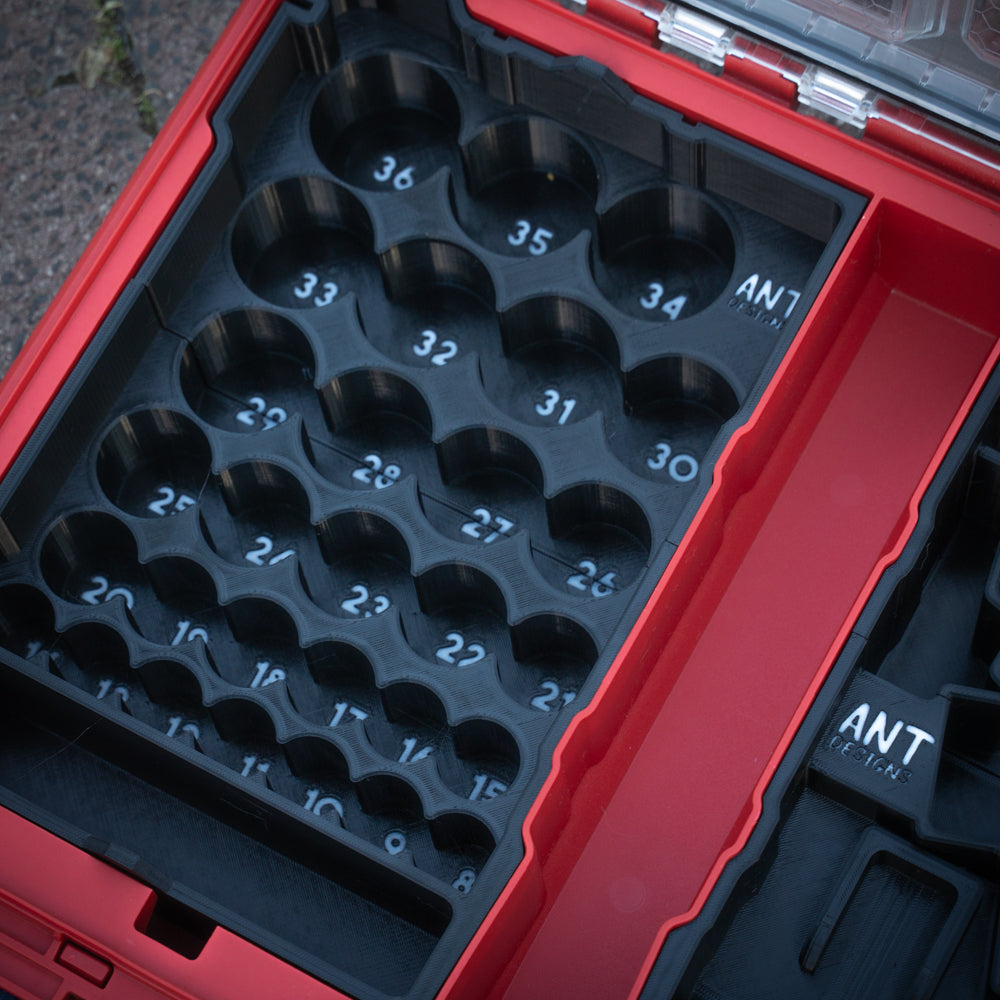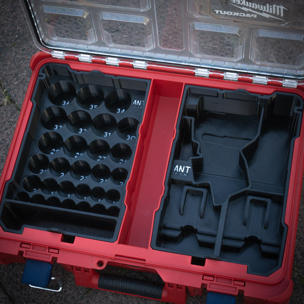 Custom insert designed to fit your Milwaukee PACKOUT to store your M12 Stubby (1/2") plus the 29pc Shockwave 1/2" Deep Socket Set!