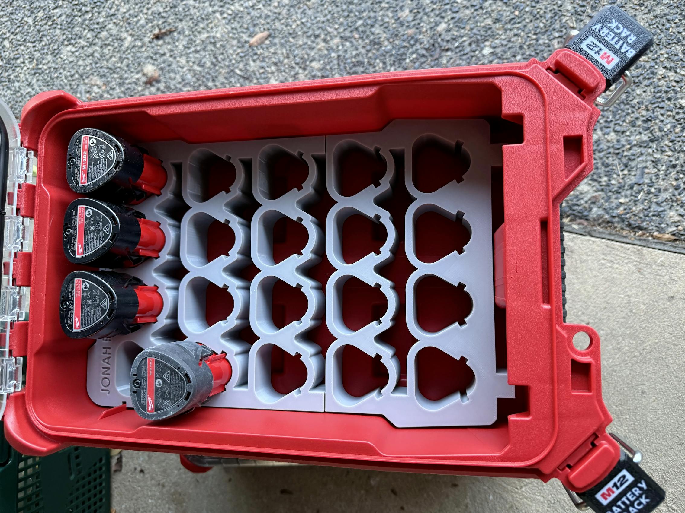 Custom insert designed to fit your Milwaukee Packout to store your M12 Batteries easily and safely!