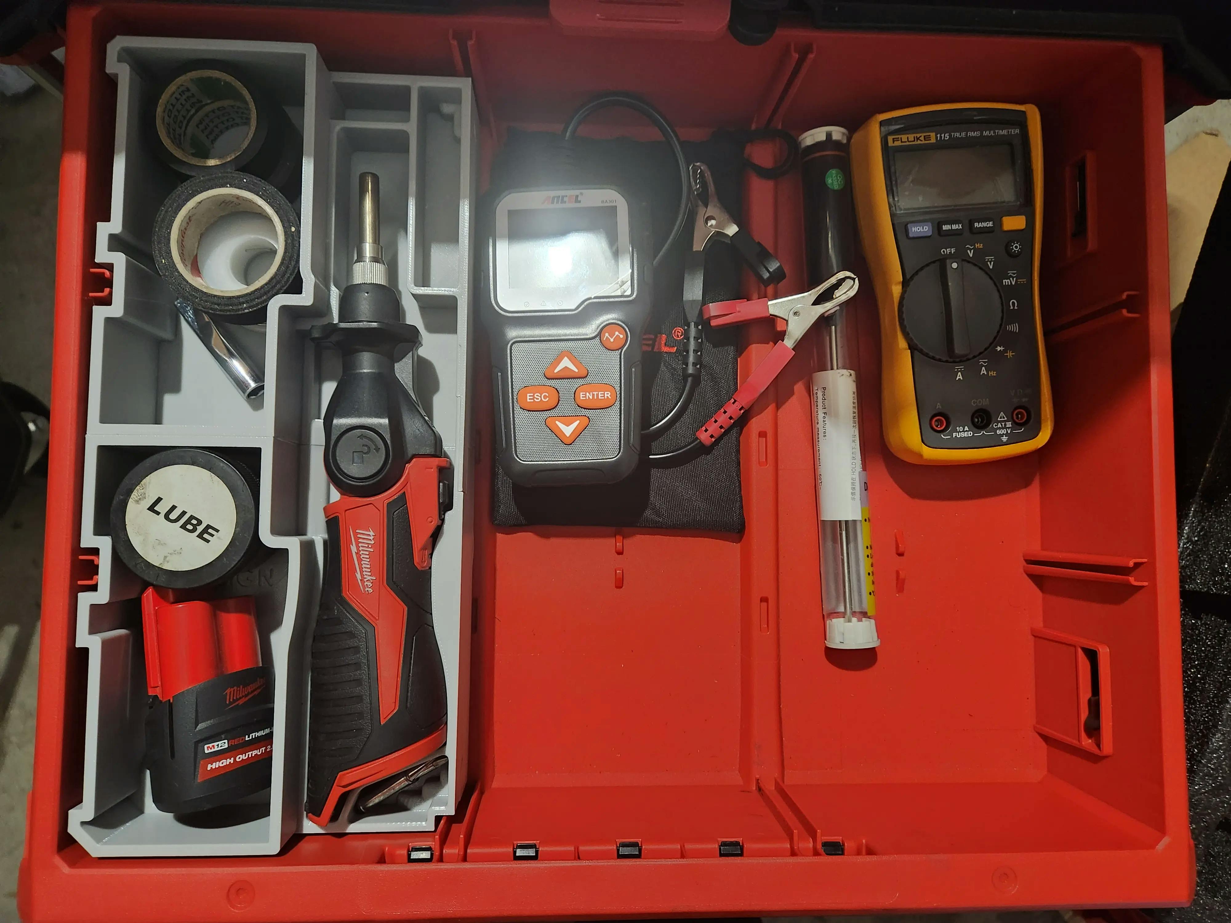 Custom insert designed to fit your Milwaukee Packout Drawers to store your M12 Soldering Iron and accompanying kit!