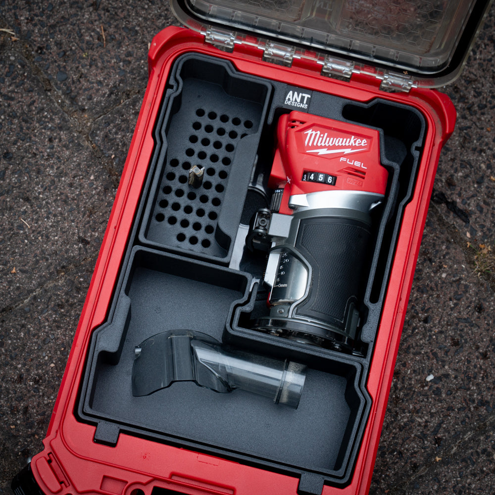 Custom insert designed to fit your Milwaukee PACKOUT to store your Milwaukee M18 Router + accessories!